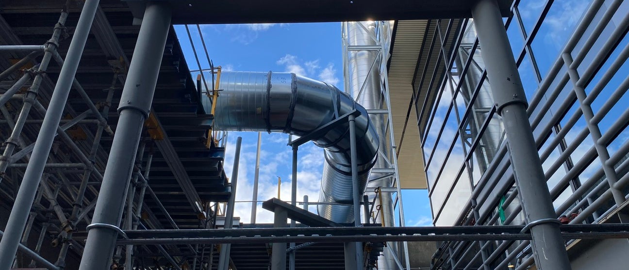 While the permanent equipment is being replaced, Hermanson is providing comfort heating/cooling to all continuously occupied spaces using temporary air handler units that have been assembled in the courtyard at the far North end of the main terminal. The temporary system installed is in a tightly compact space that truly highlights Hermanson’s success in project planning and execution in delivering a system that meets project expectations within the designated construction schedule.