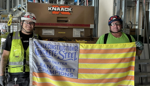 "Our team appreciates your commitment to lean and safety practices. Your crew is representing your company well by doing a great job implementing and modeling Building Life (Living Injury Free Every day). We are looking forward to a strong finish here at 400 Dexter. I'm sure this won't be the last time this crew will be recognized," said the Turner Construction Project Safety Manager.